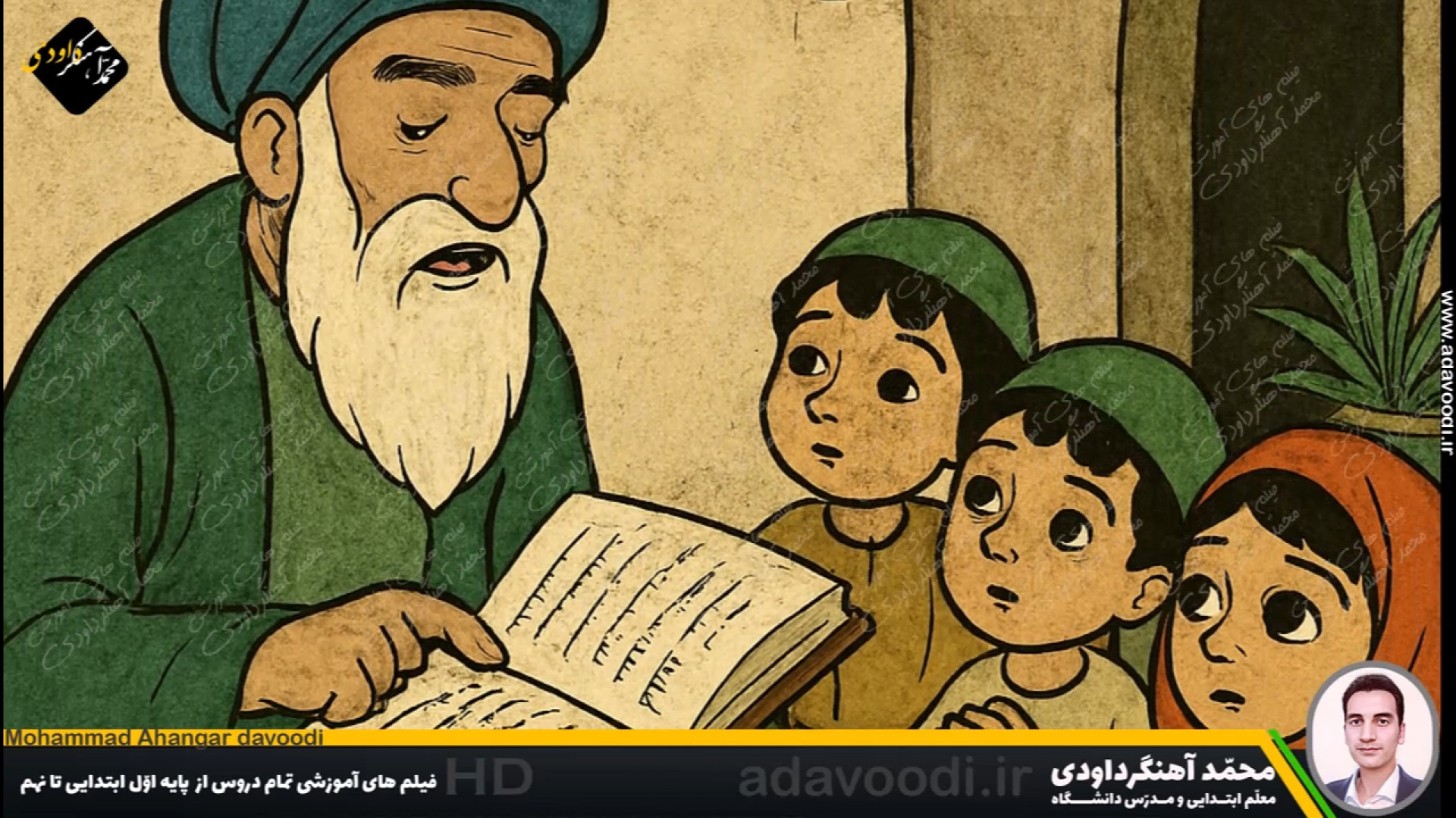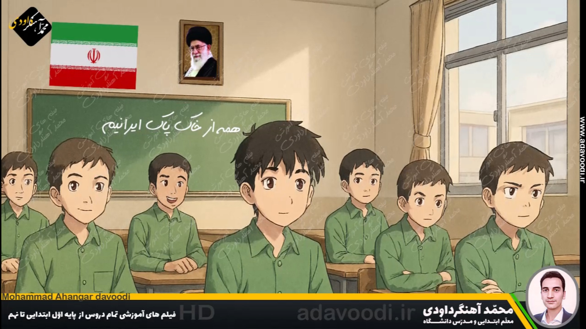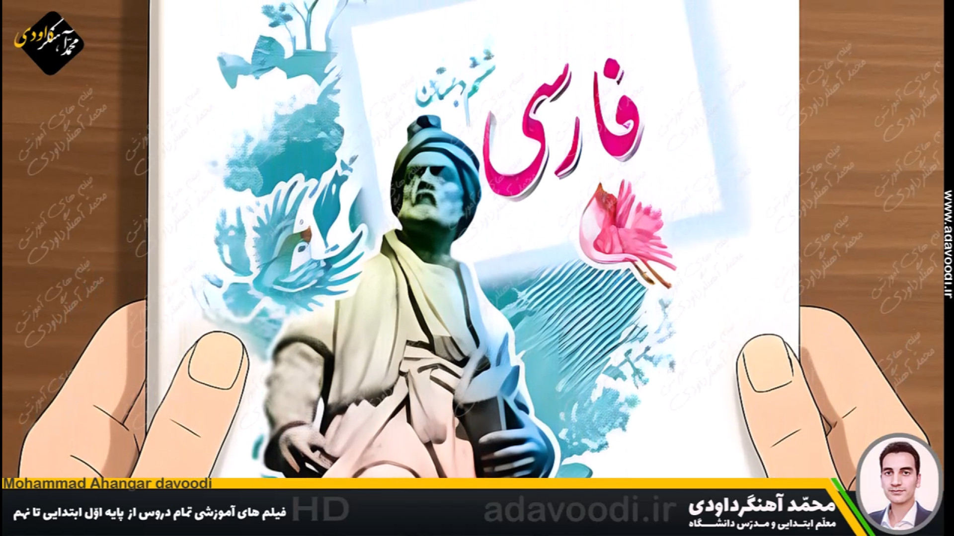 درس انیمیشن فارسی ششم بازگشت نیایش درس اوّل معرفت آفریدگار حکایت درس1 محبّت درس دوم پنجره های شناخت بخوان و حفظ کن درس2 ای مادر عزیز بخوان و بیندیش درس2 هدهد درس سوم هوشیاری درس چهارم داستان من و شما حکایت درس4 علم و عمل درس پنجم هفت خان رستم بخوان و بیندیش درس5 دوستان همدل درس ششم ای وطن حکایت درس6 انواع مردم بخوان و حفظ کن درس7 همه از خاک پاک ایرانیم درس هشتم دریاقلی بخوان و بیندیش درس8 تندگویان درس نهم رنج هایی کشیده ام که مپرس بخوان و حفظ کن درس9 باران درس دهم عطّار و جلال الدّین محمّد حکایت درس10 درخت علم درس یازدهم شهدا خورشیدند بخوان و بیندیش درس11 بوعلی و بهمنیار درس دوازدهم دوستی مشاوره بخوان و حفظ کن درس12 شیرخدا حکایت درس13 عمر گران مایه درس چهاردهم راز زندگی بخوان و بیندیش درس14 پیاده و سوار درس پانزدهم میوه ی هنر حکایت درس15 افلاطون و مرد جاهل درس شانزدهم آداب مطالعه بخوان و حفظ کن درس16 به گیتی به از راستی پیشه نیست درس هفدهم ستاره ی روشن بخوان و بیندیش درس17 آوای گنجشکان نیایش بازگشت